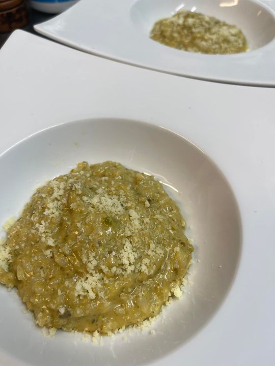 写真はピスタチオのリゾット。昨年に引き続き好評頂いております。是非ご賞味ください。