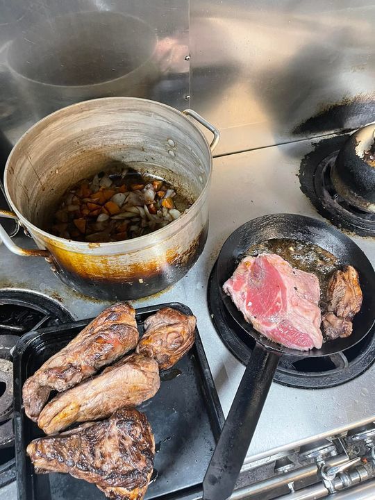 写真は仔羊の煮込みの仕込み風景。久しぶりに煮込みました。