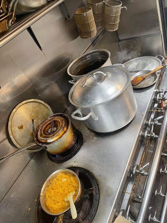 今日もせっせと仕込み風景。コンロがすべての仕込みで埋まるという…。。